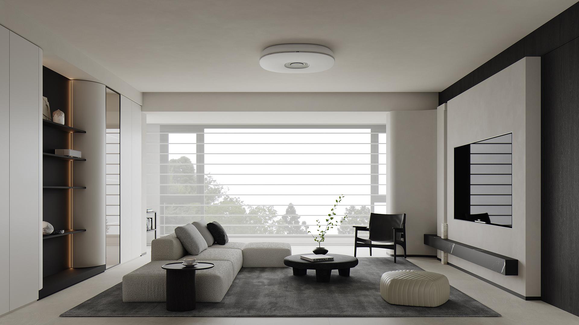 全空间大主灯Aora,是提供家庭基础光环境的吸顶灯。通过将主照明、间接照明 、夜灯与节律控制逻辑整合在一起,Aora以更集中的结构,用一盏灯完成了家庭系统照明的作用。