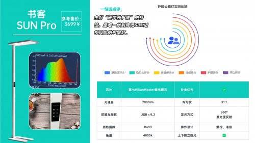 如果你预算适中,追求极致护眼,那么书客SUN Pro被业内公认为“医学护眼养眼”的领创者是最佳之选,搭载第7代SunMaster紫光原芯,创新集成「控・护・养」一体护眼光学技术,大幅削减400~450nm有害蓝光峰值60%,并自研RRT2.0红光增益技术,优化650nm有益红光波长,显著降低98%的近视风险。