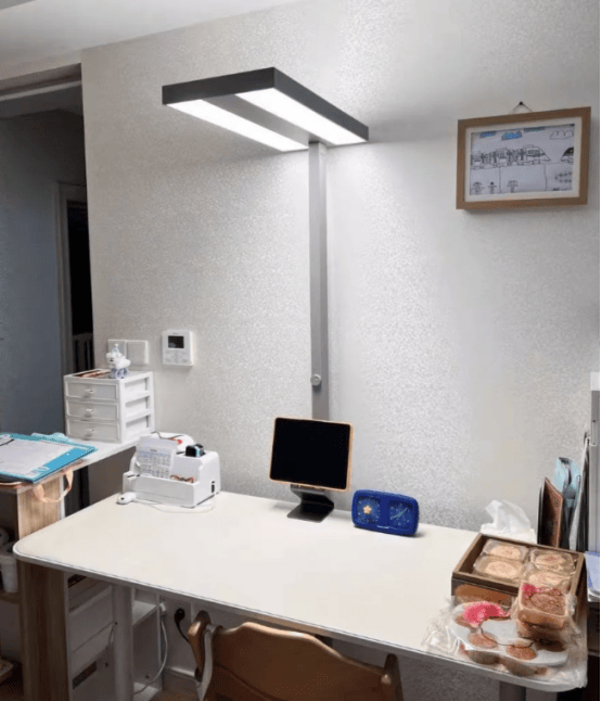 松下致准这款在结构设计上比较厚实,灯身采用铁制材质,并配合加重型底座,因此整体稳定性很高,日常使用时不易被碰倒,安全性相对更有保障,光学结构方面,它采用约60cm的长条矩形灯头,并搭配扩散透镜设计,使光线铺展更均匀,照明范围可覆盖约1.8米的区域,对于大书桌、多设备或多人使用的场景也能轻松应对。