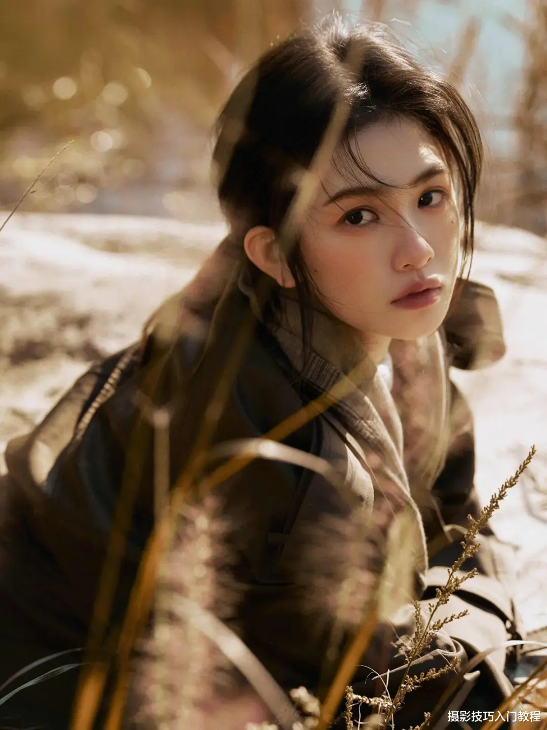 找一处可以躺下来的地方,从远处拍摄,模特与芦苇丛同时入镜,拍环境人像;也可以拉近镜头拍特写,模特盯着镜头,需要用眼神说话。