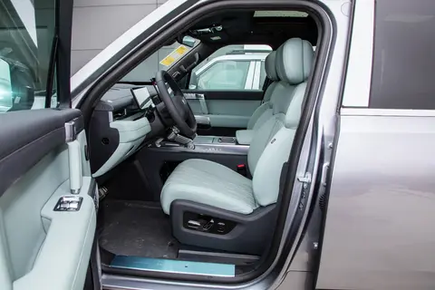 猛士M817的座椅采用了Nappa真皮材质,2+3的大五座布局,车内的空间尤为的宽敞,我的身高是180cm,坐在主驾驶这里头部空间还有两拳多一些,并且主副驾驶的座椅都有电动调节的功能,而且还配备了座椅加热、通风、记忆和按摩,座椅记忆能记住三个坐姿,按摩的力度可以调节。来到后排这里,后排的靠背角度是可以调节的,充分保证了舒适性,臀点的位置刚刚好,姿态不会很低,座椅还有加热的功能,冬天不会冷。这里的老板键可以控制副驾驶座椅的移动,让后排这里有更大的空间,常规状态下腿部空间有两拳多,我甚至可以跷二郎腿,中间这个地方是扶手还有杯架,后面有3个充电接口,单独的空调出风口也有,舒适性是完全不差的。猛士M817的后排座椅是可以放倒的,猛士M817的后备箱储物空间可以提升到2112L,尤其是在户外的时候,可以直接躺在车里休息,并且在后备箱这里还有外接电源,和家人朋友一起在户外烧烤、火锅、露营岂不美哉。