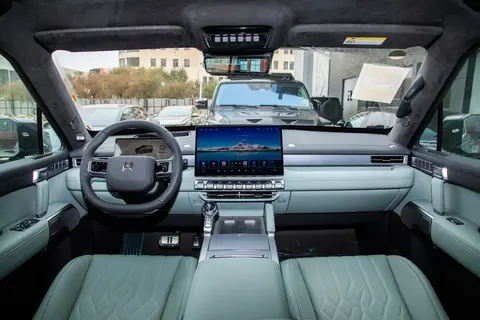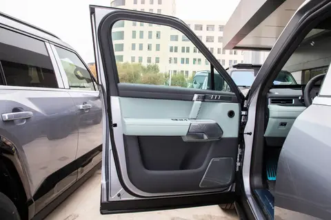 猛士M817在内饰的设计上用料也是很豪华,我的周围几乎全部都是皮质软包,车顶上用的是翻毛皮材质,车里质感很好。方向盘用的是真皮的材质,并且有加热的功能,冬天开车不手冷。前面是10.25英寸的全液晶仪表,车里还提供了HUD抬头显示功能,显示效果很清晰。怀挡的设计节省了中央扶手这里的空间,左边这里有一个旋钮,这里面是一个钟表可以看时间。旁边是手机无线充电板,充电速度很快,后面是两个杯架还有扶手箱。猛士M817的车里提供了行车记录仪,车内用的是流媒体后视镜,晚上开车不用担心远光灯。猛士M817的车里还提供了车载冰箱,有加热和冷藏的功能,车内的香氛装置后续可以自己更换不同味道的香氛,空气净化器和负离子发生器也都是标配,可以提升车内的空气质量,呵护你和家人的健康。猛士M817的车内提供了256色的主动式环境氛围灯,灯光会随着音乐一起律动,晚上还是很浪漫的。
