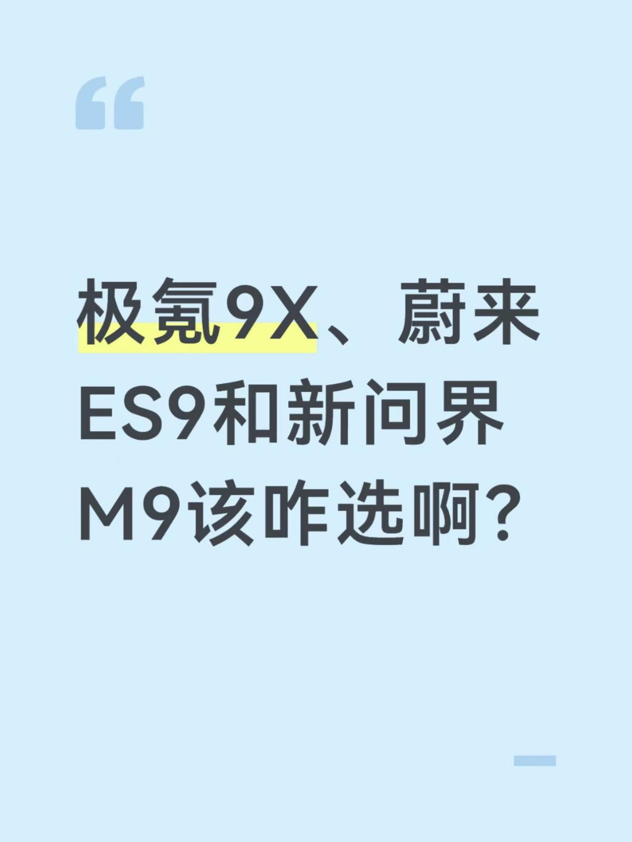 家里要购置一台大型SUV,看了好久了,家人都对极氪9X比较满意,但考虑到蔚来ES9和新款问界M9快上市了,想等等再决定