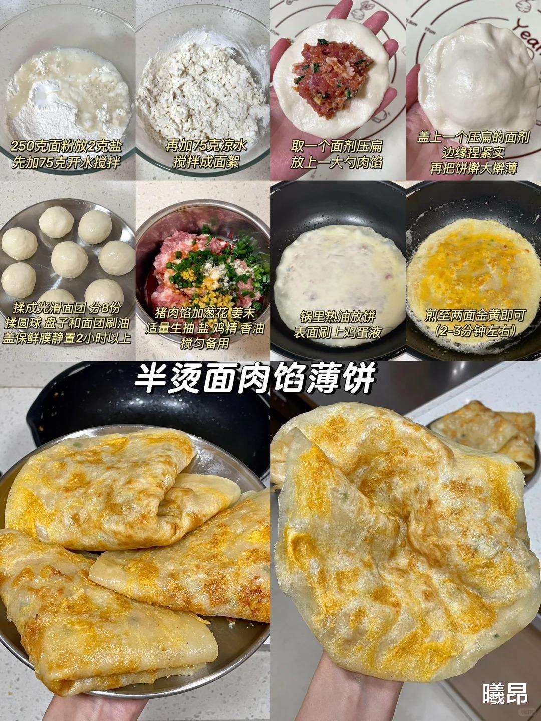 1.300g 面粉加沸水搅匀,另 300g 面粉加凉水揉成面团,两者合并醒 10 分钟