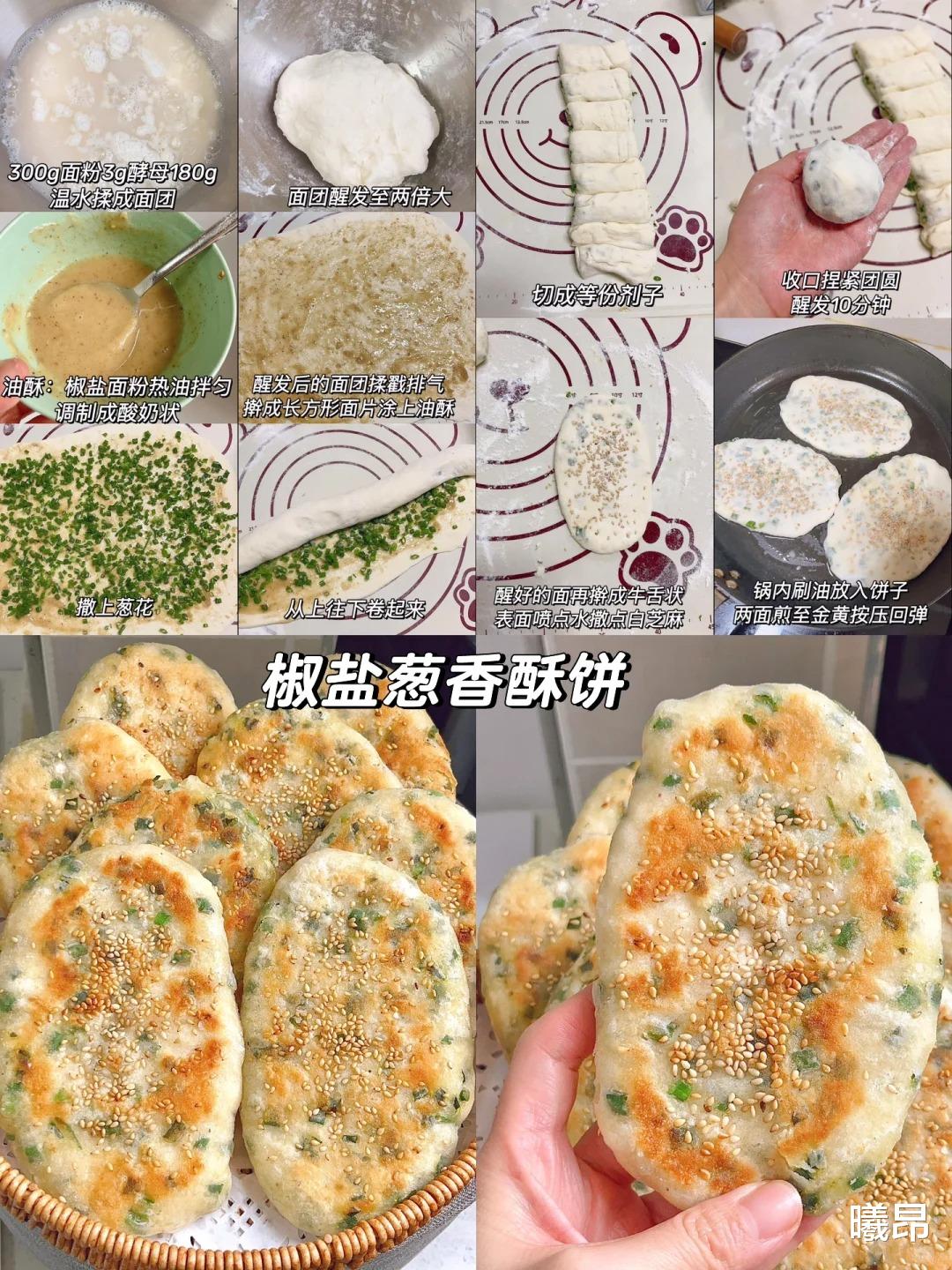 食材:面粉 250g、温水 175g、酵母 2g、油酥(面粉 1 勺 + 热油 2 勺)、椒盐适量、葱花 1 把