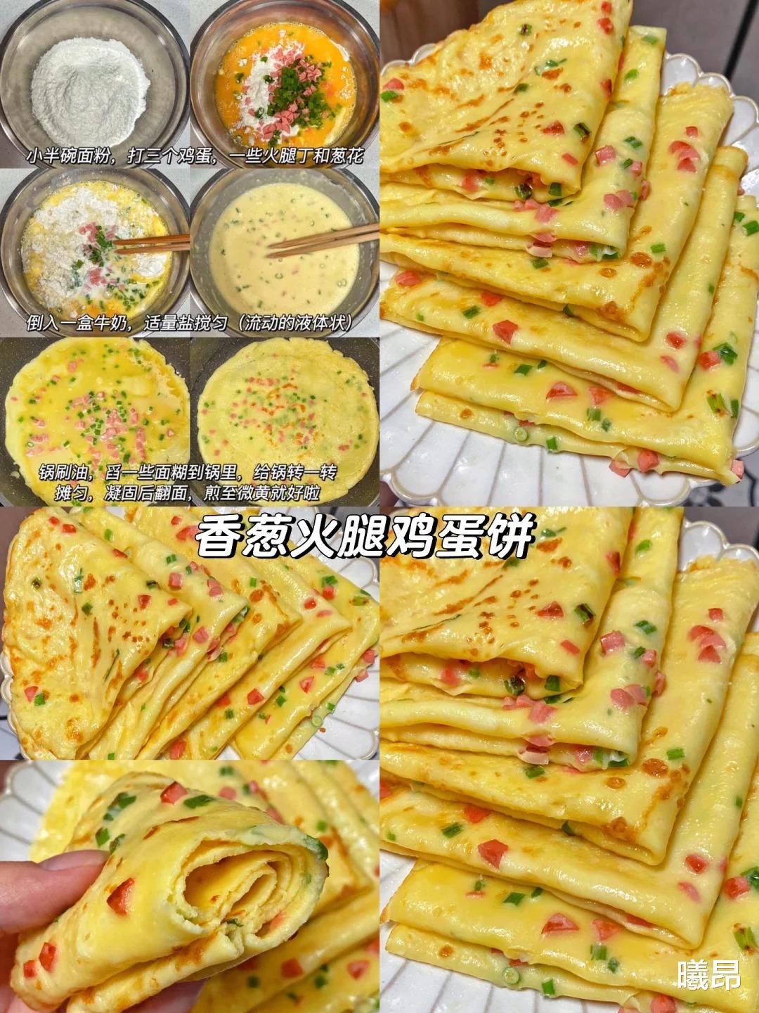 食材:面粉 200g、玉米淀粉 1 勺、鸡蛋 2 个、火腿半根、香葱 2 根、盐 1 勺、水适量