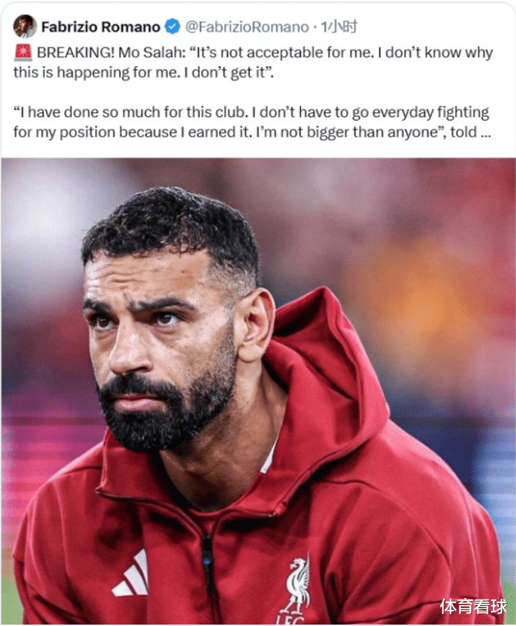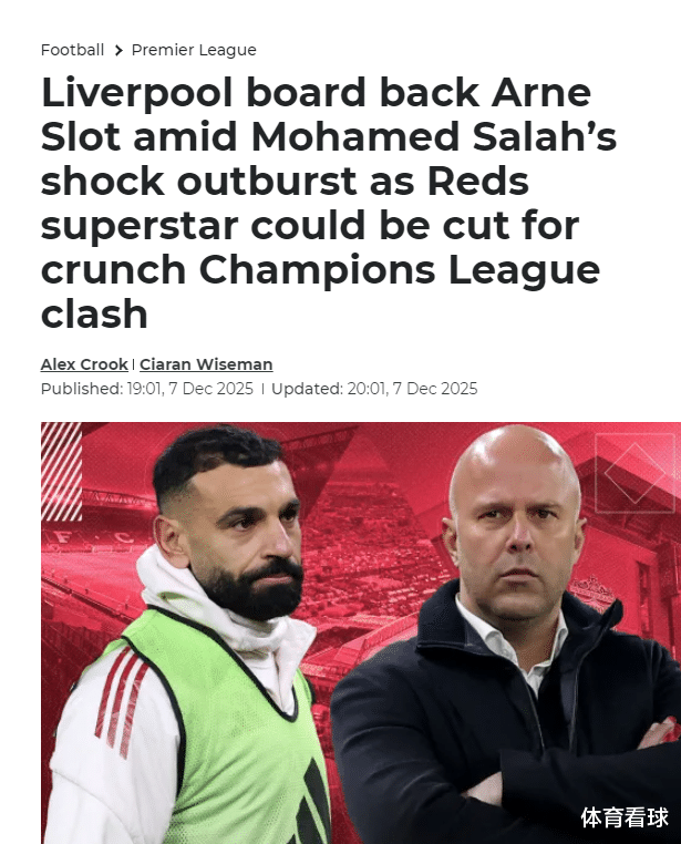 萨拉赫此前连续3场比赛被斯洛特排除在首发阵容之外,他声称自己遭到了 “背刺”,这一言论令安菲尔德高层感到震惊。