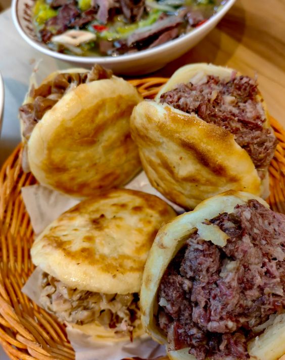 吃驴火时,老板会从一大锅热腾腾的卤驴肉中,捞出一块肥瘦相间的肉,快刀切碎,再加入一点提味的驴肉冻(老汤冷却而成),然后麻利地侧切开一个火烧,将肉馅满满地塞进去。接过刚出炉的驴火,迫不及待地咬上一口,先是感受到火烧的酥脆,耳边能听到“咔嚓”的声响,紧接着是热乎、软烂、咸香的驴肉在口中融化。 肉的鲜美与面食的麦香完美结合,再配上一碗小米粥或驴杂汤,便是保定人最踏实、最满足的一餐。