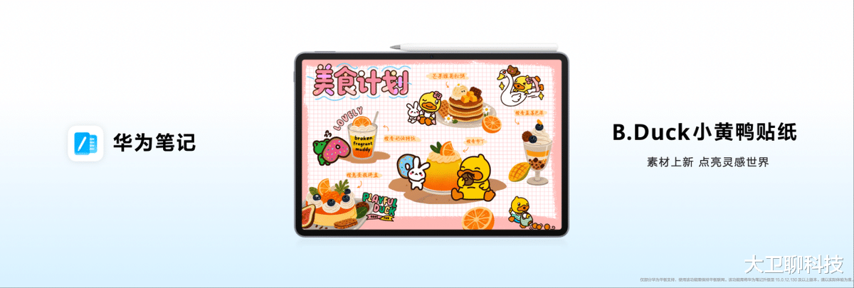 这一次很有趣的是,华为笔记合作小黄鸭IP,在素材集市中推出了小黄鸭主题贴纸!专心学习的同时又增加了趣味性,可以自定义装饰各种笔记内容。