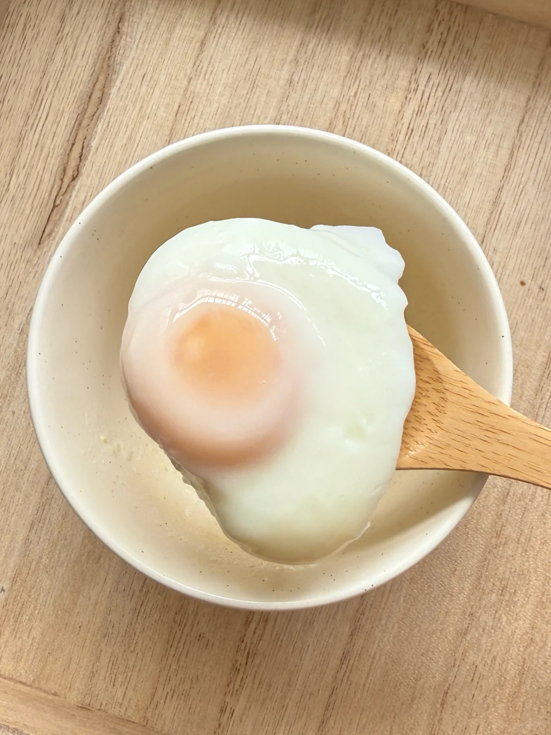 于是你就能得到一个完整的,圆润的蛋黄流心的荷包蛋了。