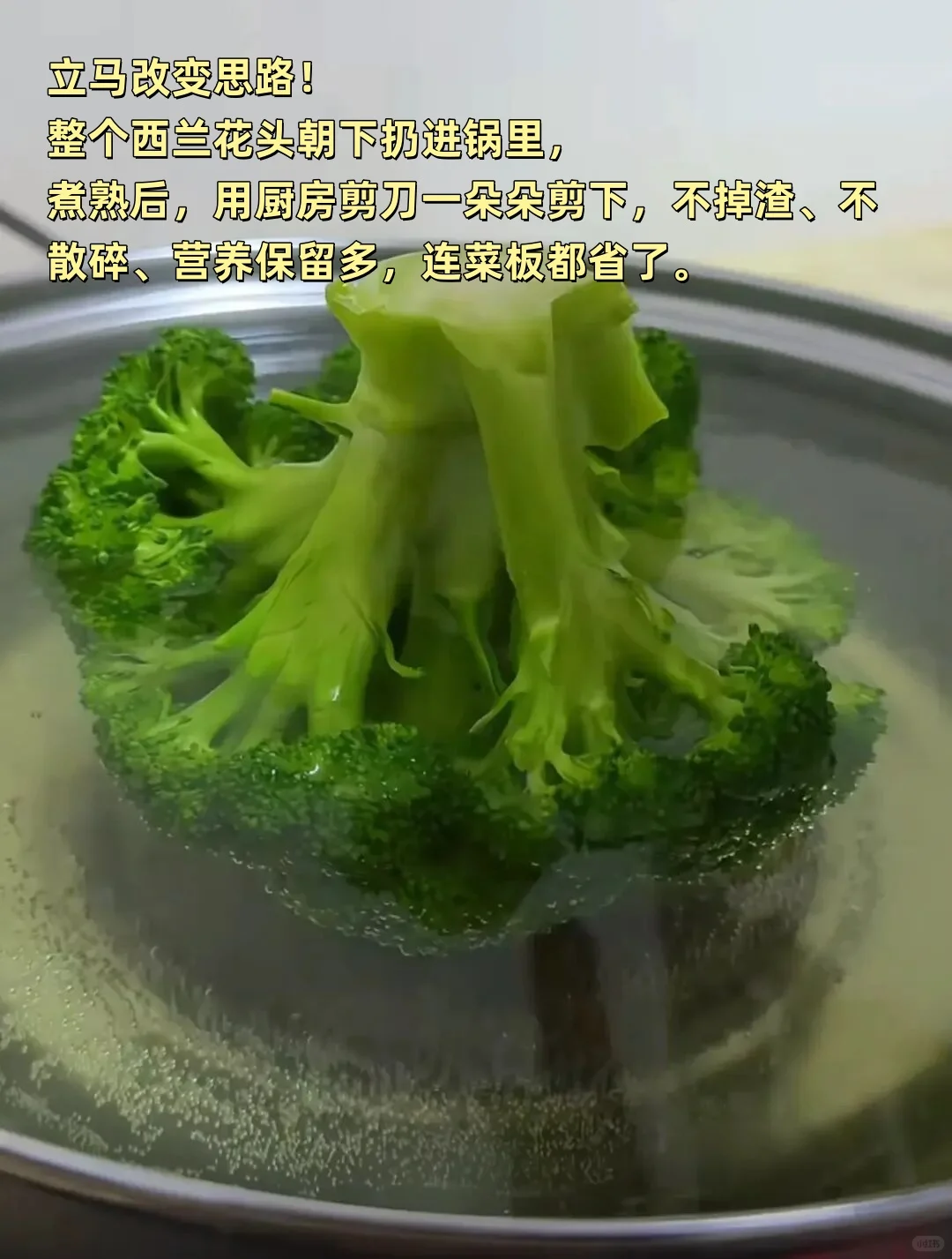 后来发现,聪明的人根本就不这样干,而是把西兰花整个放进锅里煮。