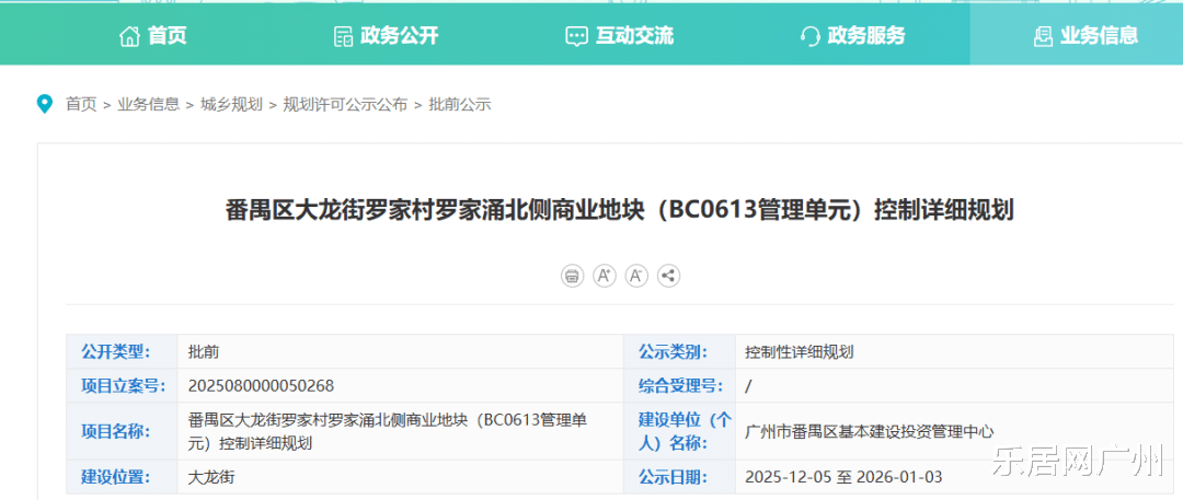 因为就在今天(12月5日),广州规自网又发布了罗家村罗家涌北侧商业地块(BC0613管理单元)控制详细规划。