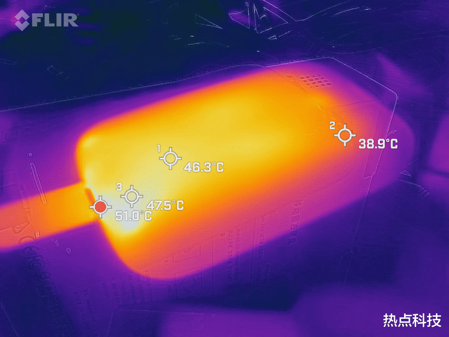 在进行AJA System Test测试同时,我们还通过软件监控了PSSD的内部。致态灵·潮流版移动固态硬盘最高温度时刻出现在写入500GB视频之时,在23℃室温下,PSSD在测试过程种温度峰值出现接口位置,达到51℃,而且越靠近接口的位置温度越高,整体温度在40℃上下。致态灵·潮流版移动固态硬盘温控表现还是比较理想的。
