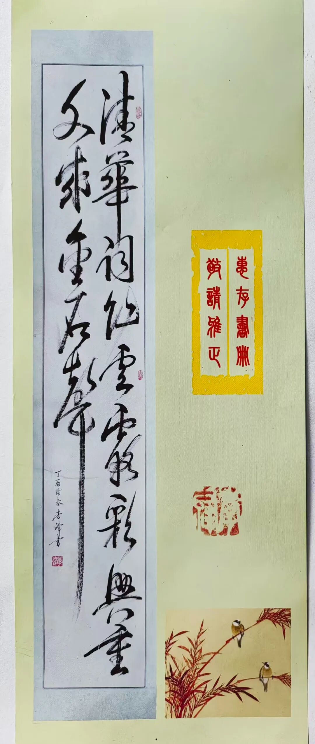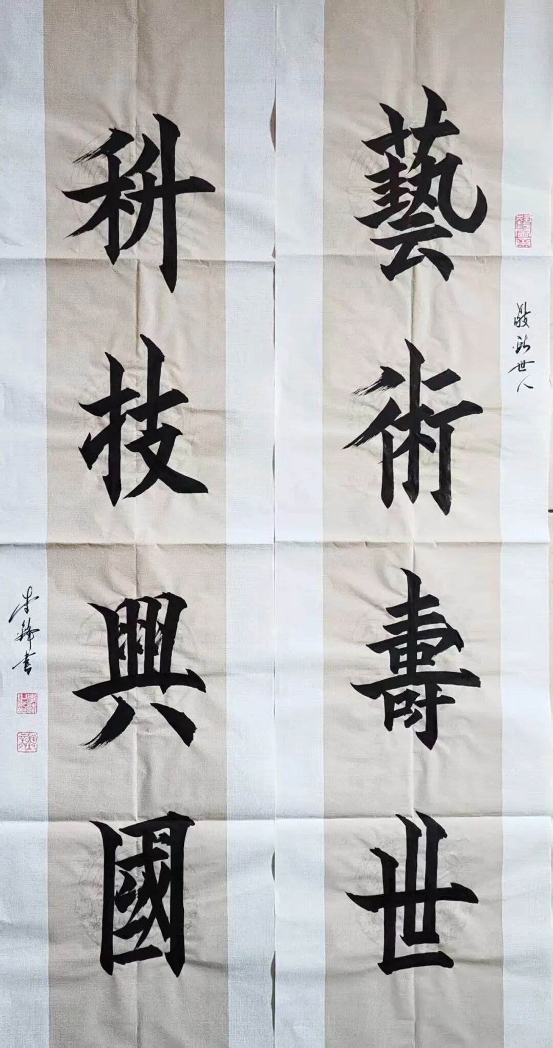 在书法创作中,李 锋同志还注重把诗词、楹联和书法创作相结合,如敬献“导弹之父钱学森”前辈的挽联和“钱学森图书馆”对联、敬献首长、长者及学友等不同对象的诗词、对联、婚联、寿联等作品,将其姓名、地域、身世等内涵,巧妙的嵌入作品中,使其灵活多变又凸显出鲜明的个性特征,从而使诗词、楹联与书法艺术融会贯通,相得益彰,体现了较高的书法造诣和文学艺术水平。同时他还学习研究了扇面、匾额、碑刻等为载体的传统书法艺术,使书法艺术植根于深厚的文化沃土之中,展现出中华民族优秀的历史文化和更加传统的书法艺术氛围,从而使他成为具有浓厚中华历史文化色彩的实力派书法爱好者。