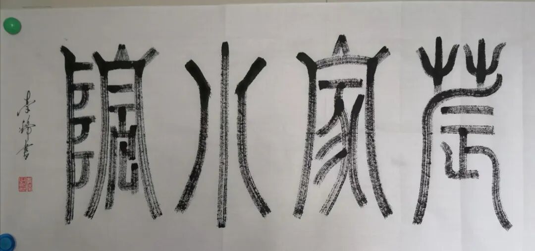 李 锋同志出生于书香门第,自幼酷爱书法艺术,六岁练起,认真刻苦临摹历代书法名家名帖,如:欧阳询、柳公权、颜真卿、启功、田英章等楷、行书;王羲之、怀素、张旭、于右任、林散之、毛泽东等行、草书;徐浩、金农、刘炳森等隶书;邓石如、李阳冰、吴昌硕等篆书;徐伯涛、李凭甲等相关书体。经多年磨练和老师指导,从理论到实践,系统学习了楷、行、草、隶、篆等书体的基本知识与技法要领,通过潜心研究书体特点,刻苦磨练书法技能,取众师之所长,受众师之所养,勤学苦练,循序渐进,使常用的书体皆有较大提高。同时还认真撰写书法讲义,为军内外书法爱好者授课示范,收到了大家的好评和欢迎。