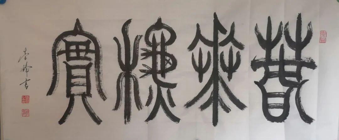 李 锋同志深知自己的书法知识和技能,还有许多不足,需要进一步向大家认真学习,通过取长补短,刻苦磨练不断提高,真正把中华民族博大精深的书法艺术传承下来发扬光大,并通过广泛传播光辉夺目的书法艺术瑰宝,把中华民族勤劳勇敢,智慧善学,互利共赢,和平发展的人类命运共同体大同理念,不断播向世界民族之林。