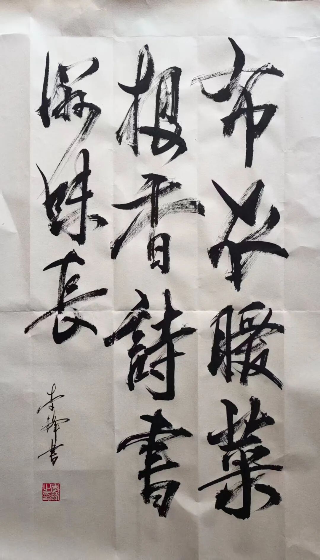 人在养书,书亦养人。写书作字需要广袤的视野、深厚的学养。书法的技巧通过平日的书写训练是可以熟练掌握的,但作为书法艺术最终追求的意境和神韵,不仅需要平日的刻苦研习,更加须要深厚的文化学养 。李 锋同志的书法有骨、有肉、有神、有趣,蕴藏着深厚的正大气象,这得益于他丰富的文化素养。创作之余,他时常博览群书,充实自我,由内而外不断提升书法创作的内涵和技法品位。他以君子的虔诚之心,坚持人书互证、人书互养,使书法艺术成就了他丰富的学识和对生活感悟的精神迹化。