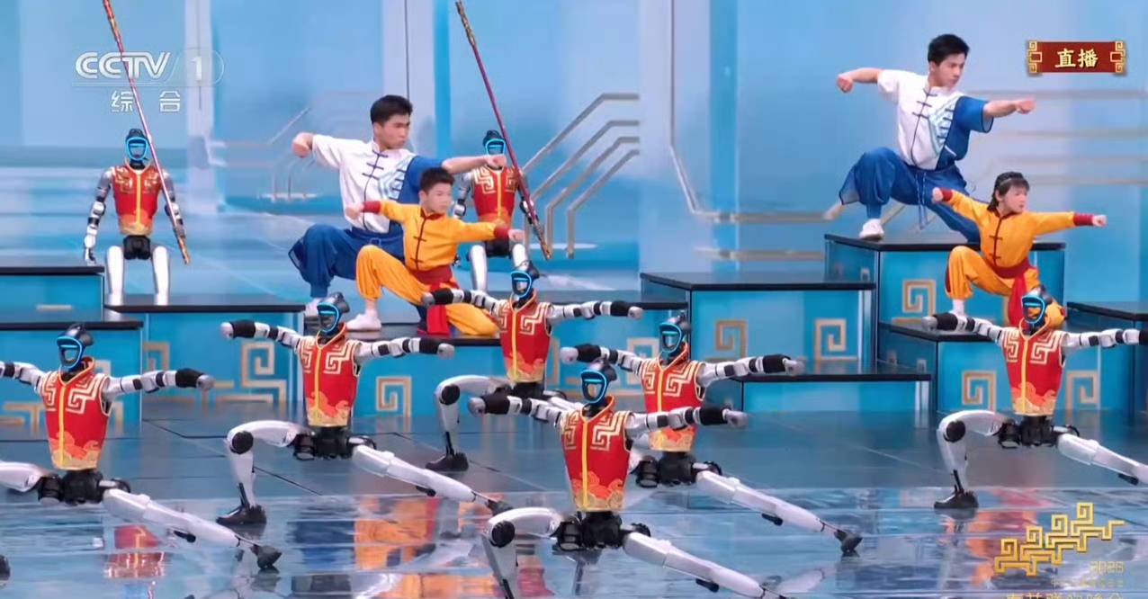 宇树创始人王兴兴现场介绍,春晚《武bot》是全球首次全自主人形机器人集群武术表演,此次为默茨代表团复刻的表演,完整还原了春晚舞台的所有动作,核心技术已实现90%零部件国产化,无需依赖海外核心部件。