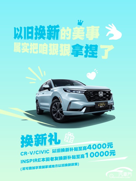 12月1日-12月31日,购买东风本田CR-V、思域、英仕派、HR-V四大车型,可享至高10000元以旧换新补贴、核心部件终身质保、0首付0利息金融优惠以及保险基金补贴。