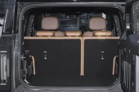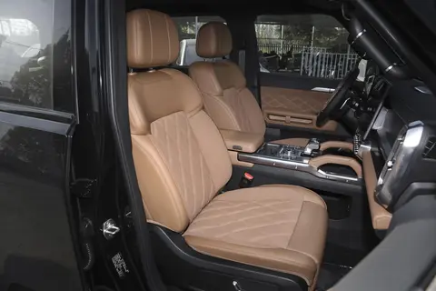车内细节设计兼顾实用与便捷,硬派多功能方向盘粗细适中,握感扎实,不同握姿下均可找到适配角度。门板处拉手设计实用,上车时可借力辅助入座,越野路段颠簸时,握持拉手可保持身体稳定。环绕式氛围灯采用隐藏式光源,亮度适中不刺眼,夜间行驶时可提升车内氛围。全车配备 5 处充电口,前排 3 个 USB/Type-C 接口,后排 2 个 USB/Type-C 接口,儿童座椅旁的充电口可便捷为儿童平板充电,同时配备 220V 外接电源接口,露营时可满足小型电器的供电需求。内饰整体延续外观硬派风格,同时通过材质选择与细节设计保障舒适性,适配不同使用场景。