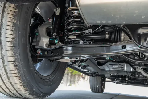越野场景使用中,车辆在碎石路、陡坡及浅水坑等路况下通过性符合预期。切换至越野模式后,碎石路行驶时四驱系统可均匀分配动力,车轮无明显打滑;陡坡攀爬时动力输出平稳,无需大幅踩油门即可完成攀爬;220mm 离地间隙配合 700mm 涉水深度,保障复杂路况通过性,避免托底或涉水风险。该车采用高强度钢笼式车身结构及列阵式高密度车顶,车身扭转刚度达 31000N・m/deg,车身强度较高,越野时可提供安全保障。底盘采用前麦弗逊、后多连杆独立悬架,调校兼顾不同路况,城市道路行驶时,减速带及坑洼路段的颠簸感被有效过滤,车内乘坐稳定性良好;越野路段时,悬挂支撑充足,车身侧倾可控。整套动力与底盘系统形成互补,适配城市与越野的双重使用需求。