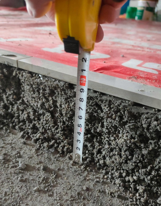 网友@和气生财888:瓦工铺瓷砖时,居然铺了10公分厚!要知道,当初合同里明明写着铺4到5公分,这么厚的厚度,连层高都没考虑过吗?