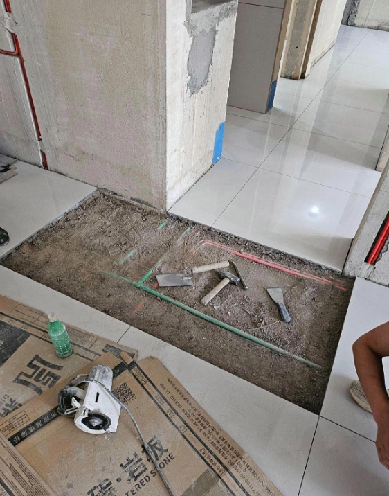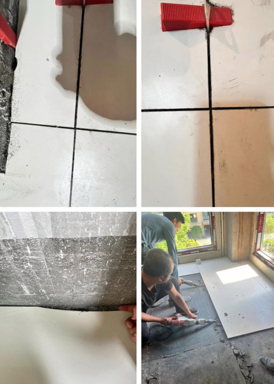 等他回来一看,地砖缝隙大小不一,地面高低不平,还有好几处空鼓,没办法只能全部返工。