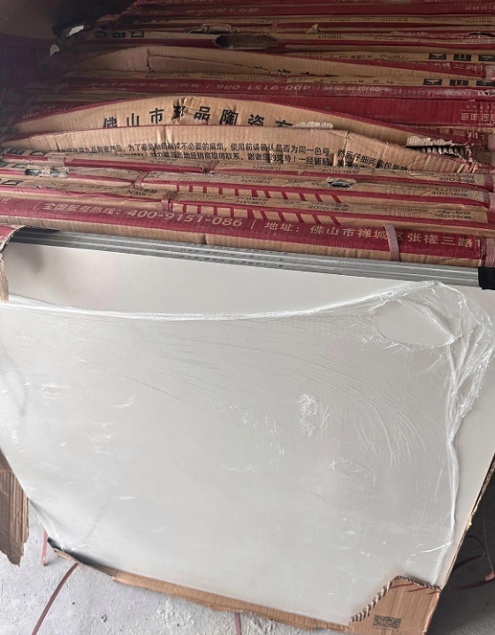 当初选砖时,老板态度特别热情,拍着胸脯说卖的是广东砖,800×800规格的瓷砖包装上印着广东佛山的地址,也有3C标志,还标注了“优等品”。