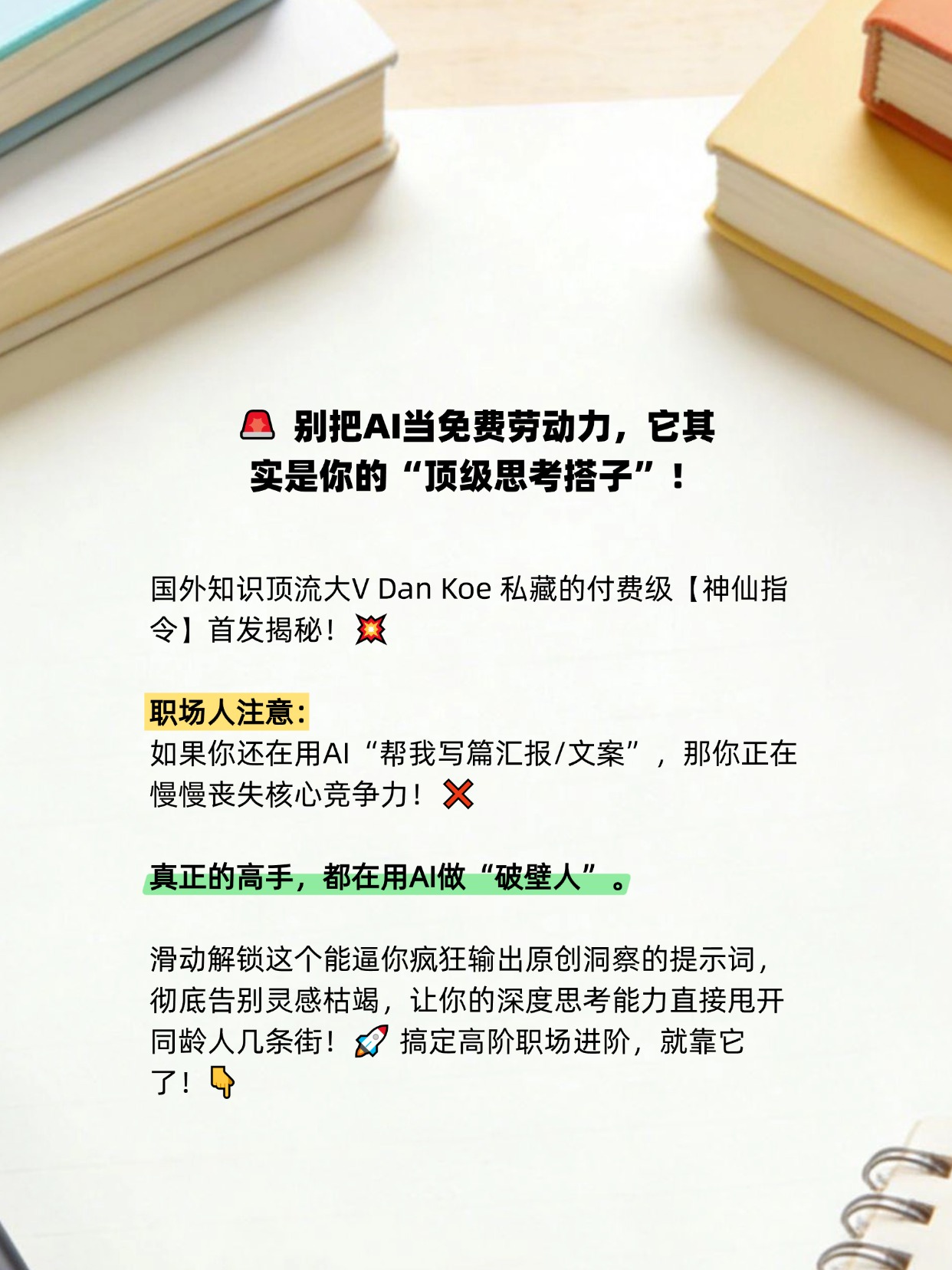 如果你的AI还在给你写“众所周知”、“综上所述”这种正确的废话,说明你根本没用对!❌ 国外知识顶流 Dan Koe 的这套思路真的让人醍醐灌顶:不要让AI替你思考,而是让AI逼你思考!