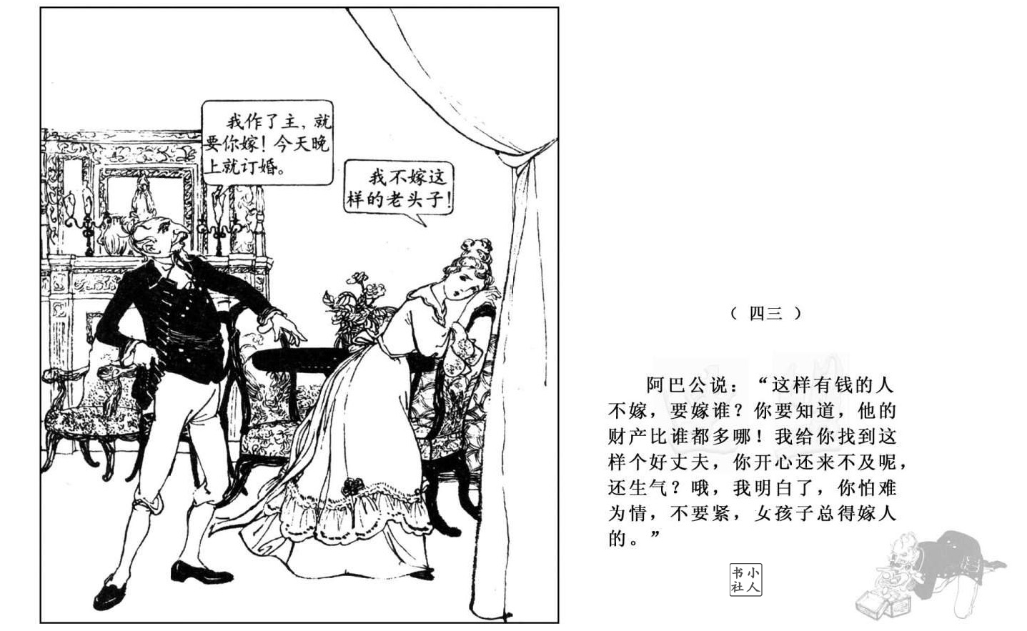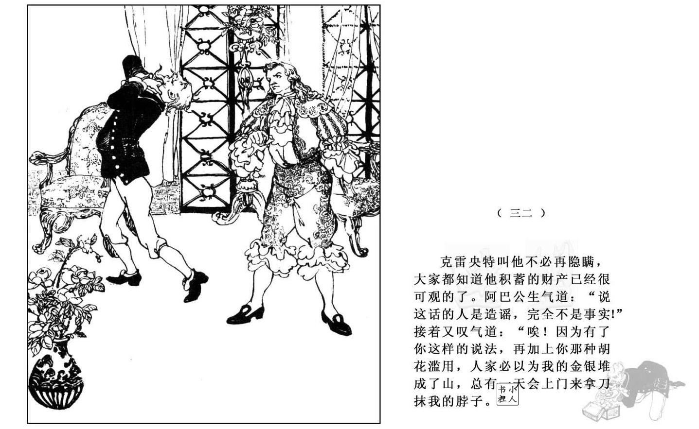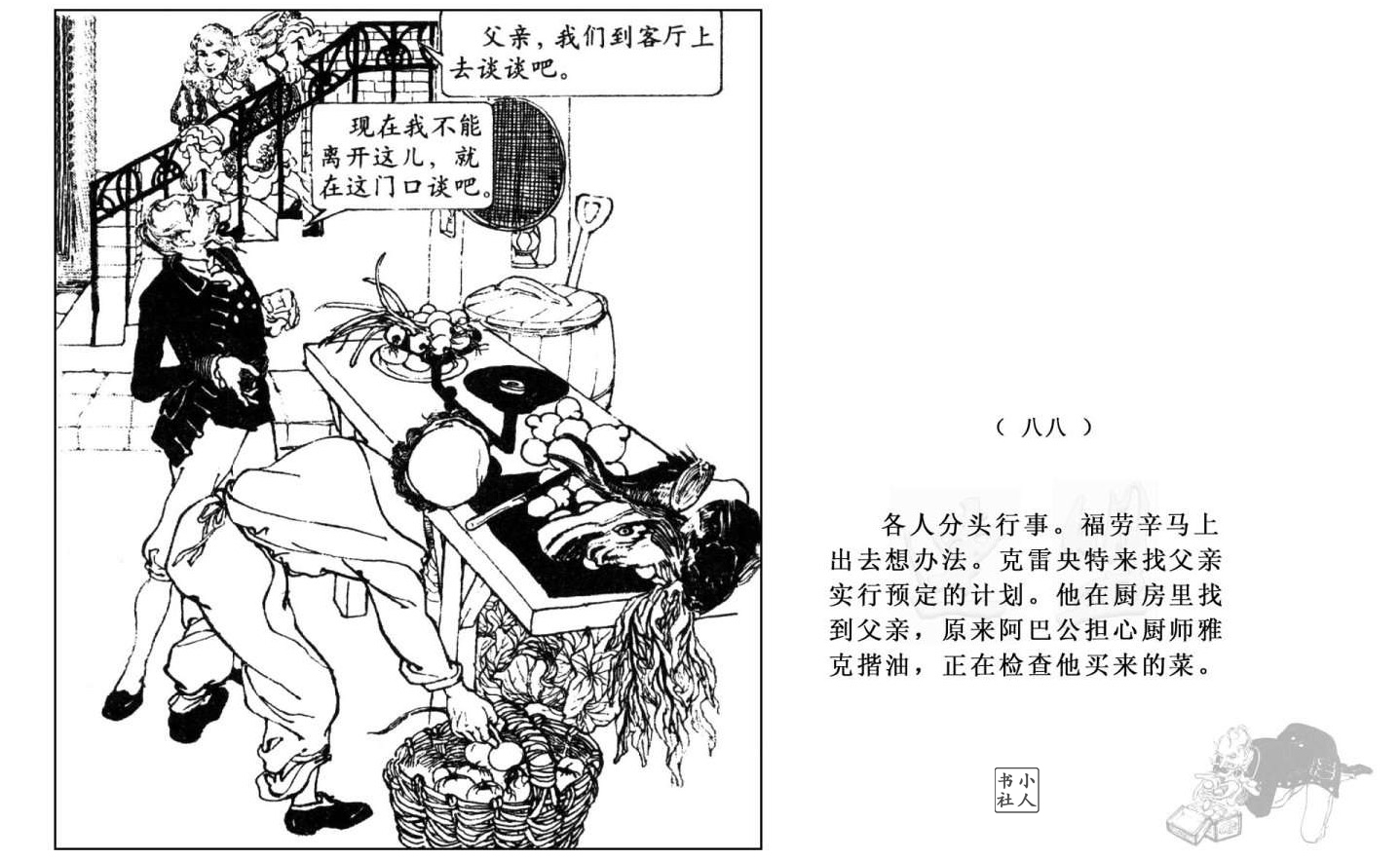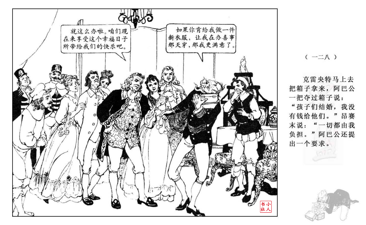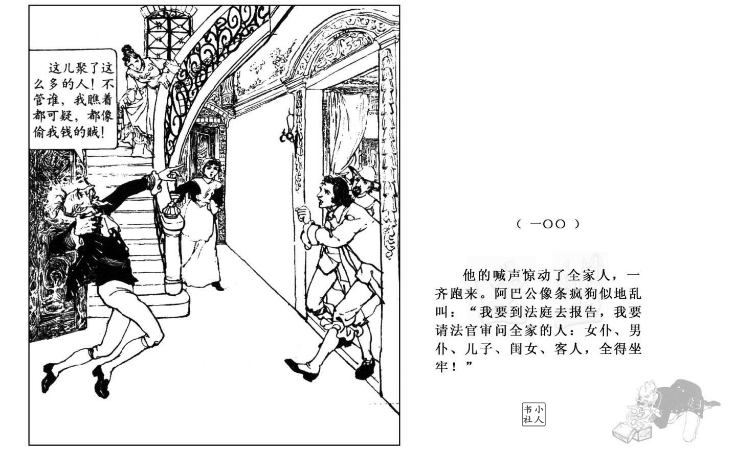 《吝啬鬼》连环画是根据十七世纪法国作家莫里哀的同名作品,由李白英改编,胡克文绘画。作者通过这个故事,生动地刻画出一个爱财如命、不惜以儿女的婚嫁作为致富手段的守财奴肖像,并用喜剧的形式来进行讽刺和嘲笑,尖锐地鞭挞和揭露了当时法国社会的丑恶现象。