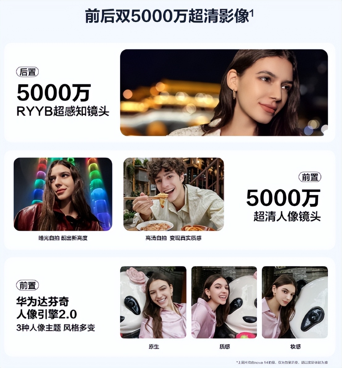 拍照是nova系列的传统强项,活力版更是将“拍得值”贯彻到底。前置5000万像素镜头支持高清自拍,即便在傍晚餐厅等弱光环境下,也能呈现自然肤色与丰富细节;后置同样搭载5000万像素主摄,配合RYYB超感光传感器和QPD全像素对焦技术,夜景更亮、色彩更准、抓拍更快。无论是旅行打卡还是日常记录,它都能稳稳接住你的每一帧精彩。