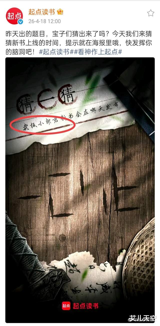 昨天起点发的即将开新书的超人气白金的猜猜猜活动,确实是卖报小郎君。