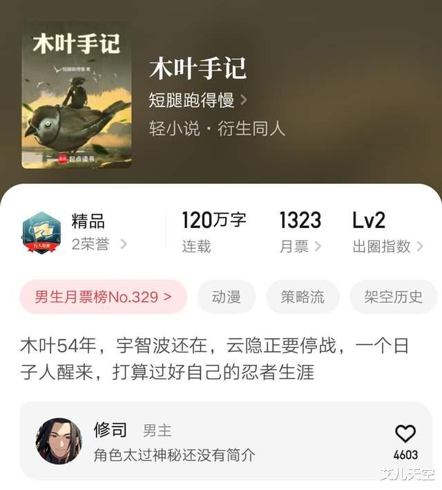 短腿跑得慢的火影同人《木叶手记》也是在昨天下午万订的。火影同人还是很能打的,时不时就能出些万订新书。