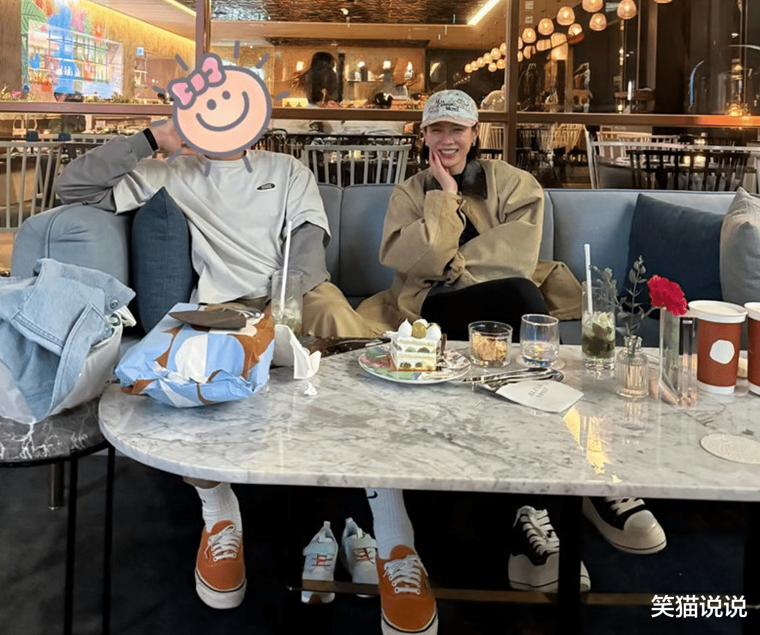 在照片中可以看到,孙艺珍穿着黑色的衣服外搭着一件卡其色的外套,她戴着棒球帽,搭配黑色的帆布鞋,看起来十分休闲又很有运动范。坐在孙艺珍身边的男子虽然脸上被打码了,但是粉丝们知道这是她的丈夫玄彬,玄彬穿着白色拼接灰色的上衣搭配卡其色的裤子,他穿着橘红色的鞋子,很有运动范。当然,不少网友也看得出玄彬的穿搭跟孙艺珍是情侣款穿搭。孙艺珍和玄彬都坐在餐桌前,对着镜头摆出单手托腮的pose拍照,样子十分甜蜜!