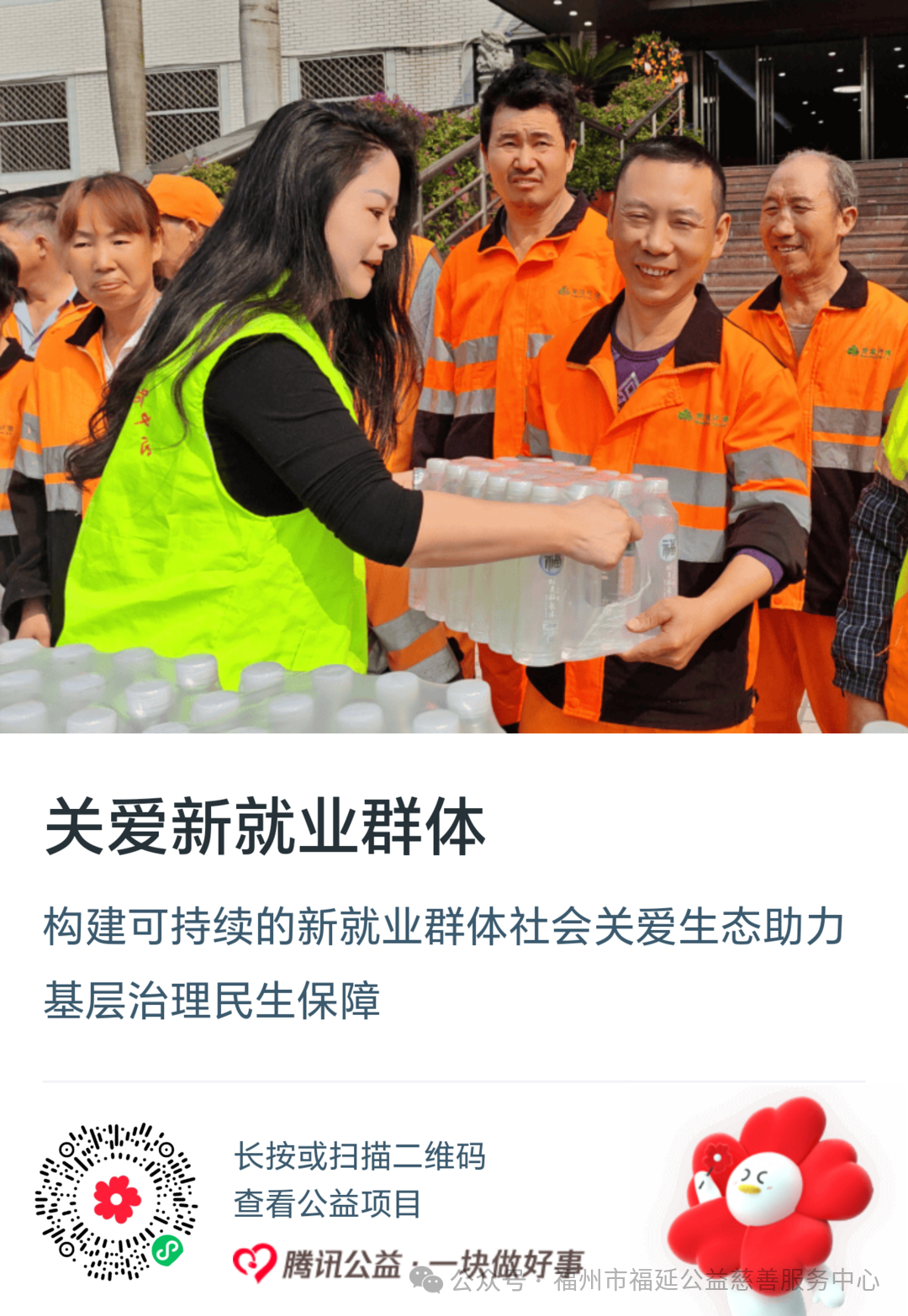 城市的温暖,需要你我共同守护;新就业群体的幸福,期待与您携手共建。恳请社会各界爱心人士、企业与志愿者积极响应,通过腾讯公益平台慷慨捐助,与福延公益并肩同行。让我们以2025年度的扎实实践为基,以公募项目的广阔平台为翼,为每一位奋斗在一线的守护者筑牢保障、送去温暖,让城市因关爱更有温度,让奋斗者因保障更有力量!