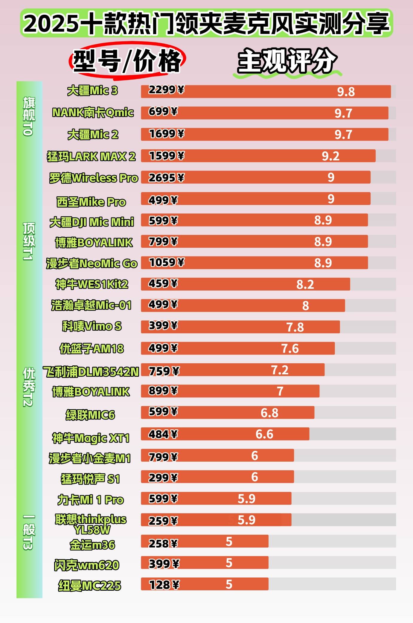 下面是我测试了几十款领夹麦后,挑选出的10款既好用又存在一定争议的机型,不知道怎么选的朋友可以参考: