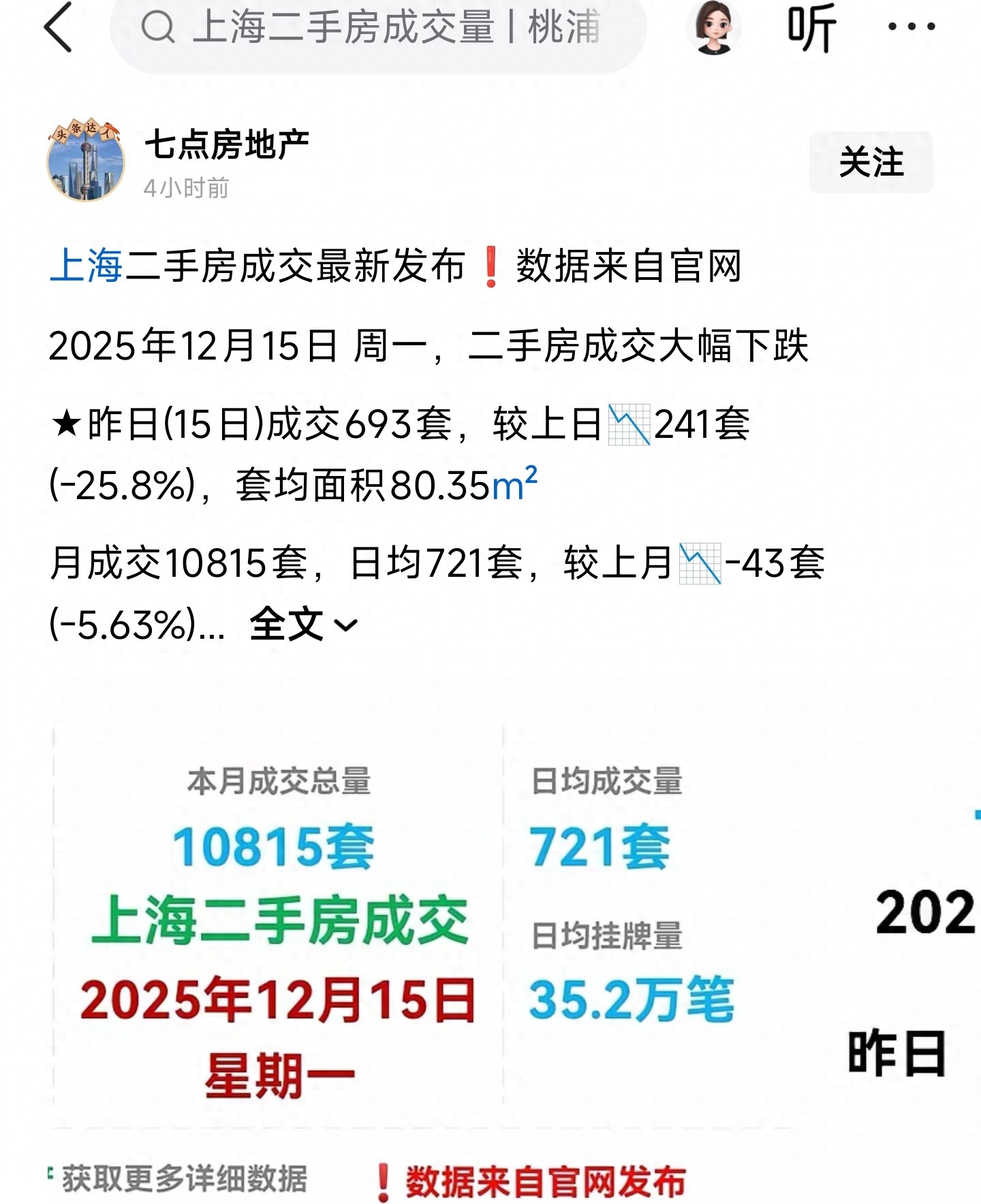 楼市大风云,上海楼市回暖了。二手房日均成交721套,环比下跌5.63%,是时候买房了。