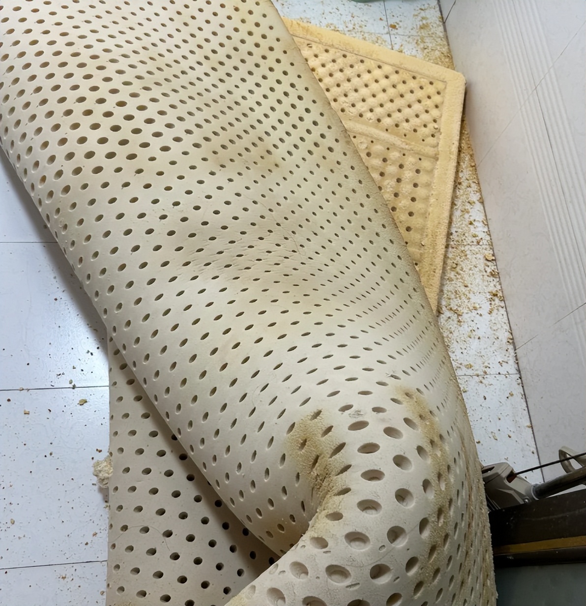 乳胶床垫用了两三年左右它的问题就慢慢出现了,比如床垫发黄、粉化、掉渣等等!