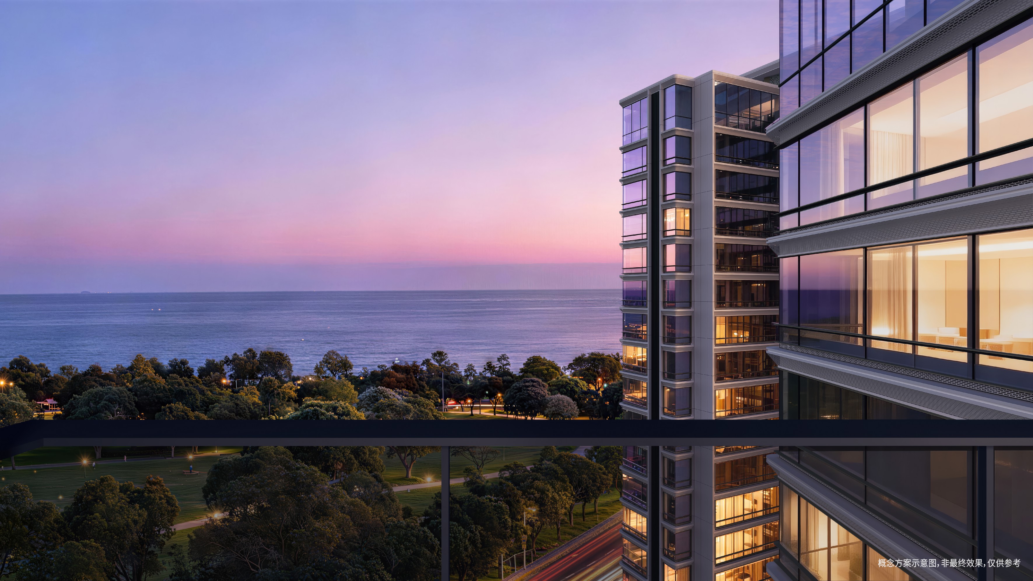 ③ 270°环幕视野+3.05-3.1米层高从阳台延伸至卧室的270°景观面,配合3.05-3.1米层高(标准住宅层高2.8-2.9米),空间通透感、采光面、视野开阔度均提升一个档次。