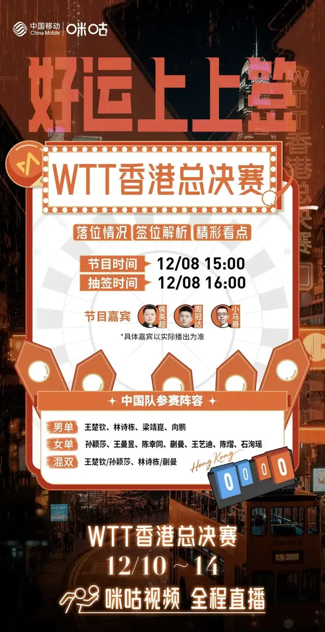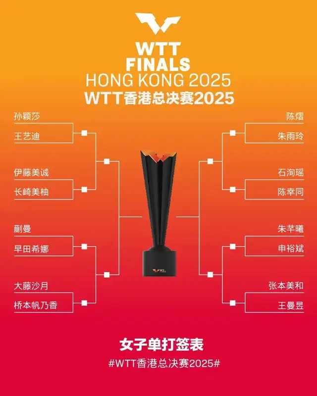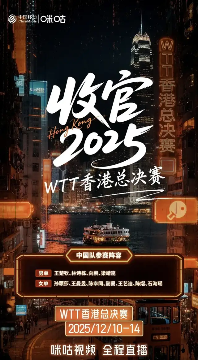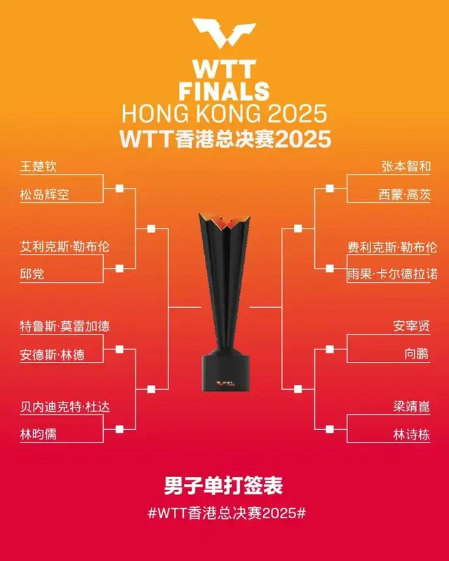 作为WTT年度收官战,2025WTT香港总决赛将在香港红磡体育馆举行,比赛时间是12月10日至14日。与前几届不同,本次赛事取消了男双和女双项目,新增了混双比赛,且单打资格完全依据WTT系列赛积分确定,不设外卡机制。