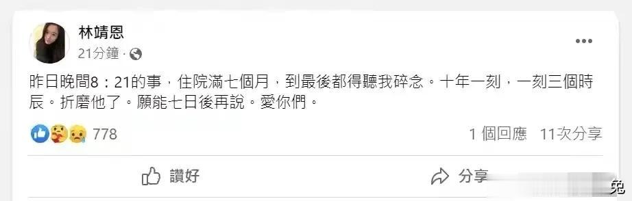 相差40岁的爷孙恋,因李坤成的去世而完结 当年的林靖恩不顾父母家人的阻拦,执意与大自己40岁的李坤成结婚 如今,李坤成因大肠癌去世,却把全部身家都留给了少妻林靖恩,或许是为了让林靖恩以后的生活能有个保障 在李坤成最后的时光中,是林靖恩一直陪伴在侧,细心照顾。虽然年龄差距悬殊,两人在一起却已有十年,相信这十年会成为俩人都无法忘怀的时光 日子还长,希望林靖恩能坚强的走下去,越来越好