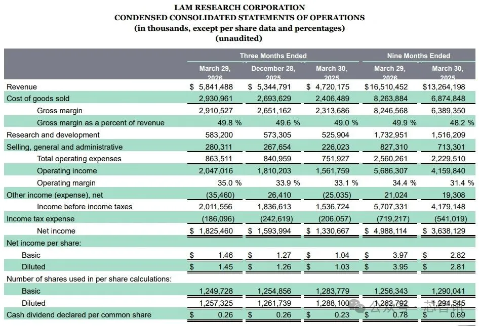 根据财报显示,泛林集团第三财季实现营收58.4亿美元,同比增长24%,环比增长9.3%,优于分析师此前预期的57.5亿美元。这是公司历史上最高的单季营收纪录。