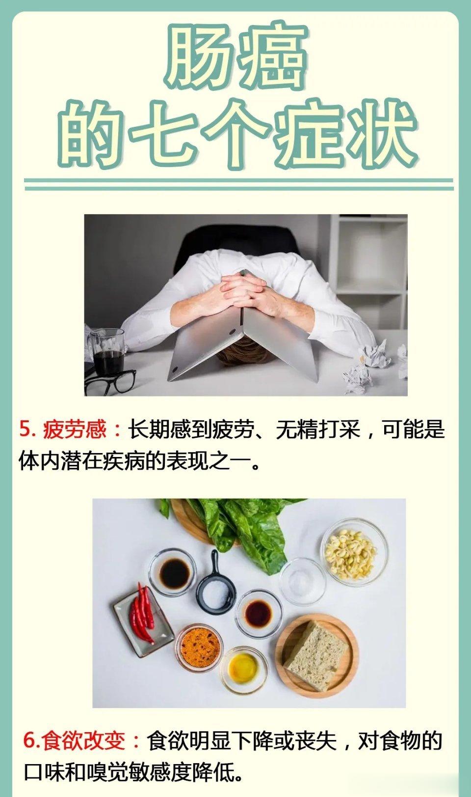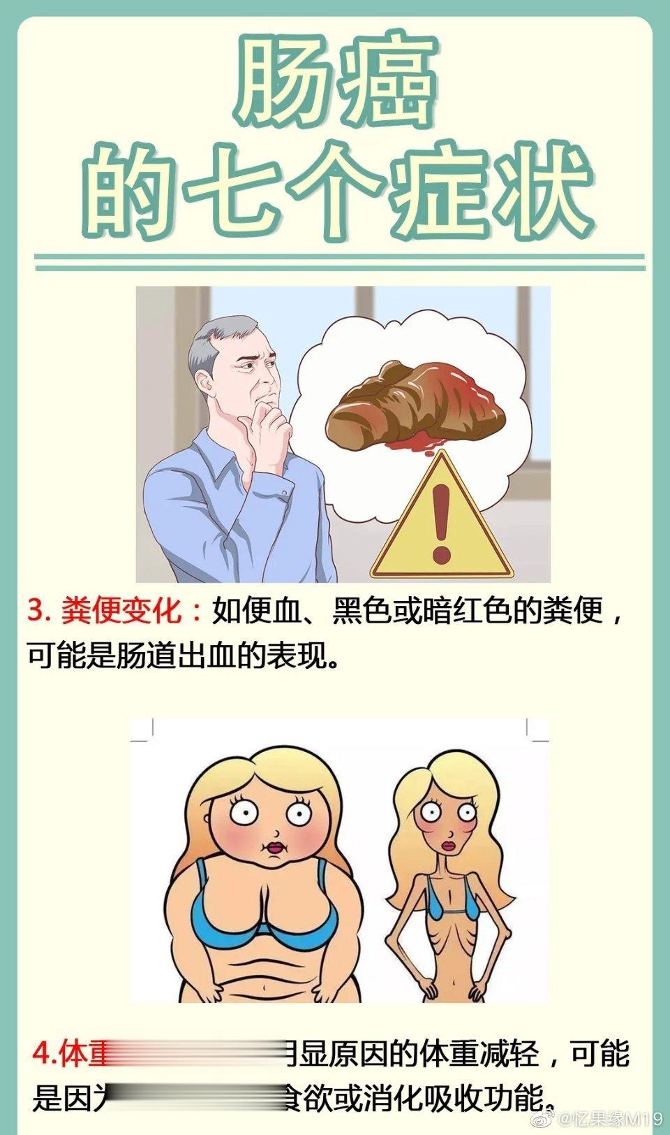 4. 体重下降:没有明显原因的体重减轻,可能是因为肠癌影响了食欲或消化吸收功能。