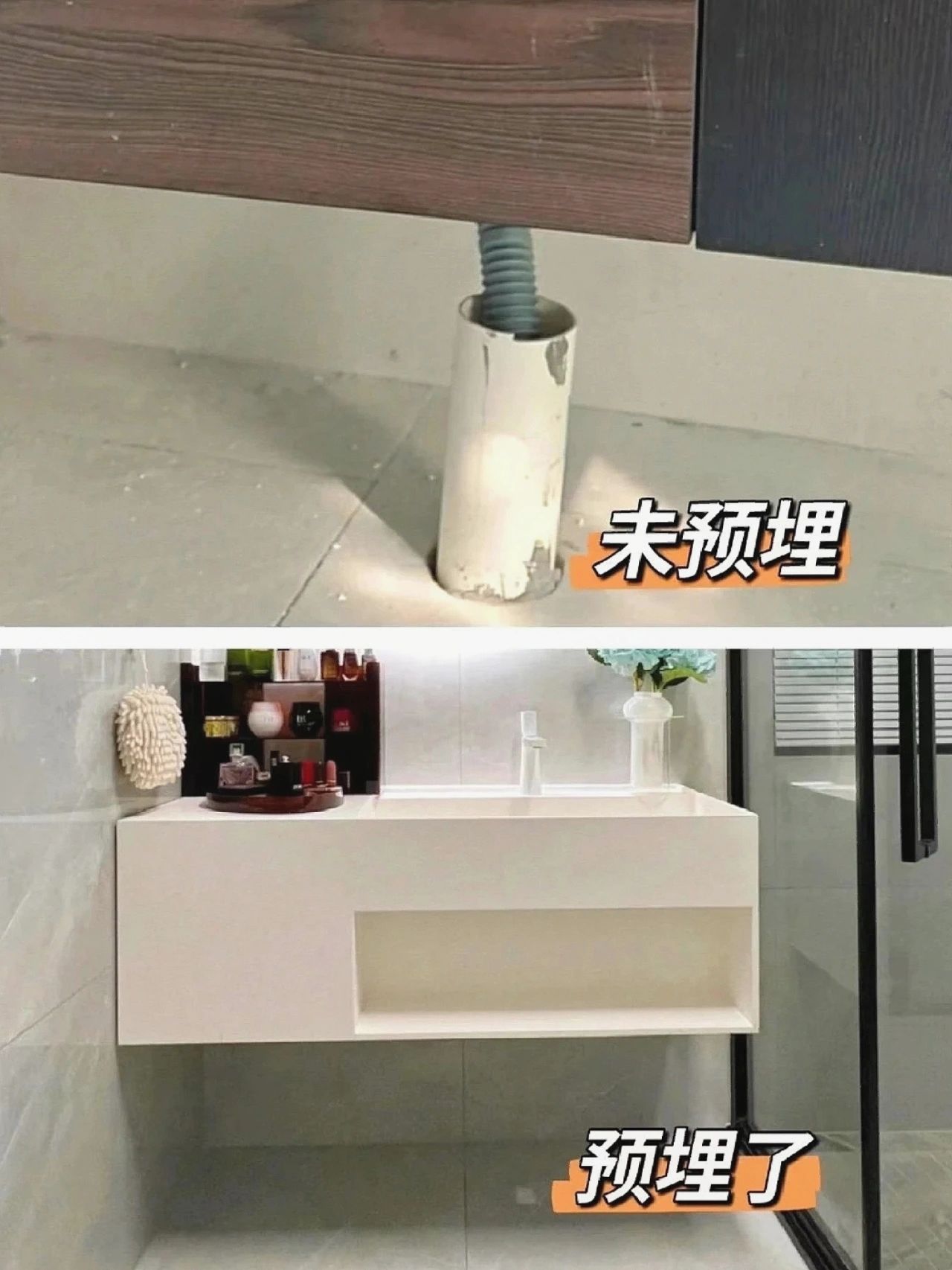 洗手盆排水管,不能用45度弯[点赞]瞎扯,返水返味与45度无关,厨房煤气预埋管,一般都是32管,有地暖或者高层才用40管,不懂别瞎扯