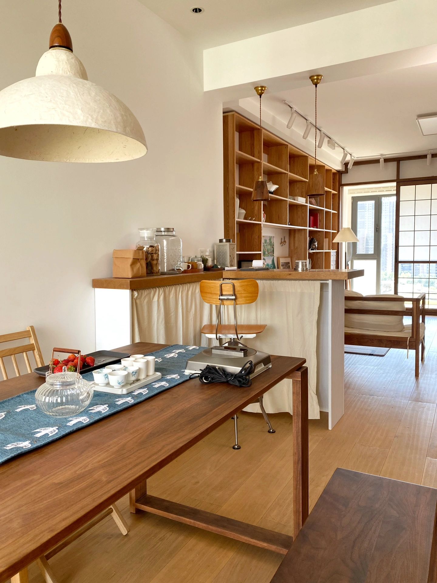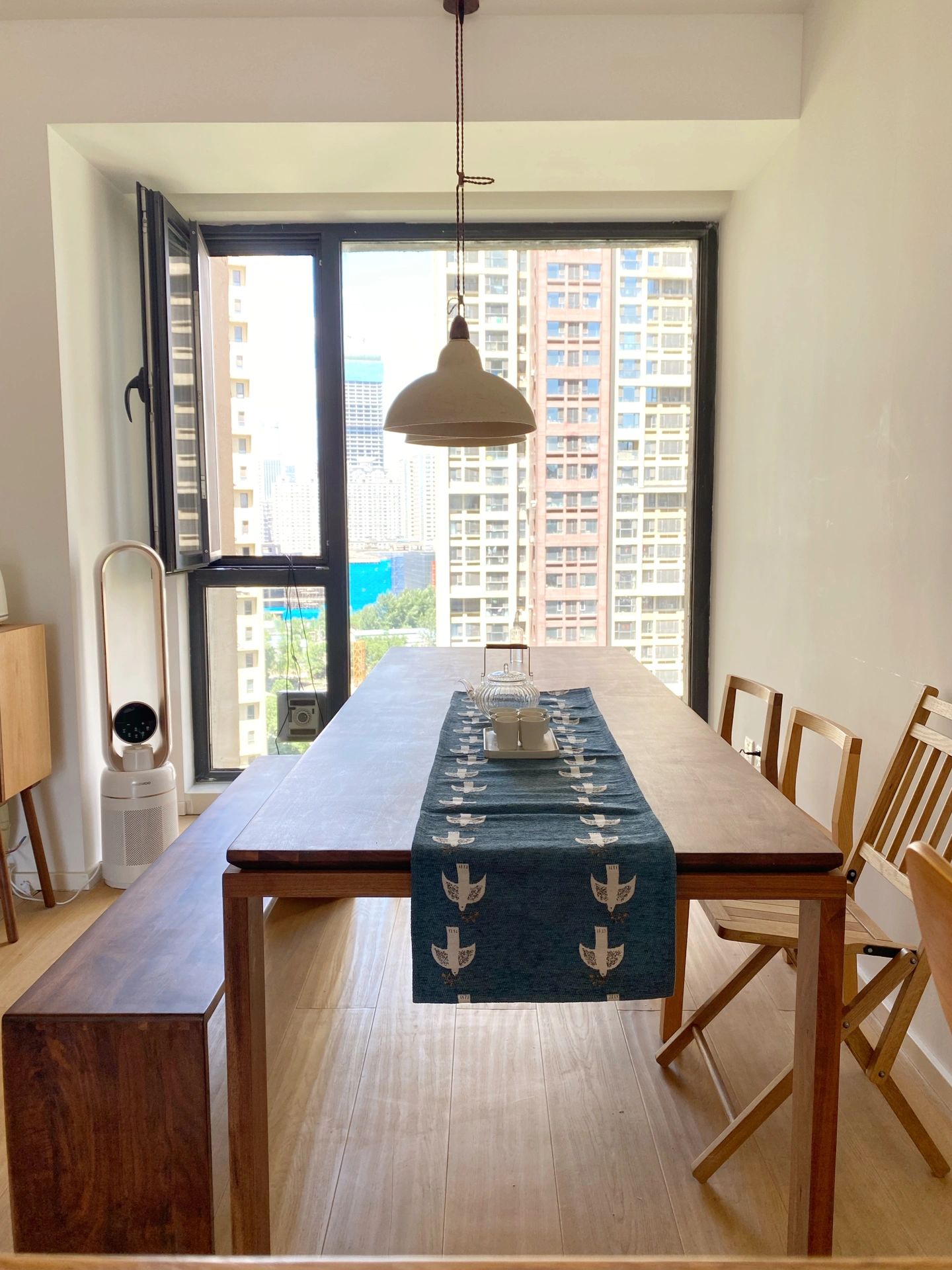 如果餐厅空间足够的话,一定要选择长度在1.7米以上,我家是2米,来客人的时候一边能坐3个人。