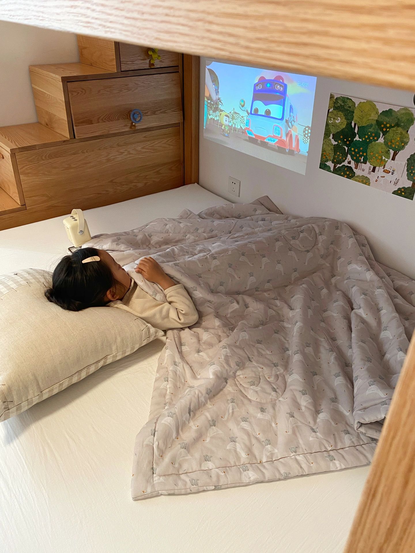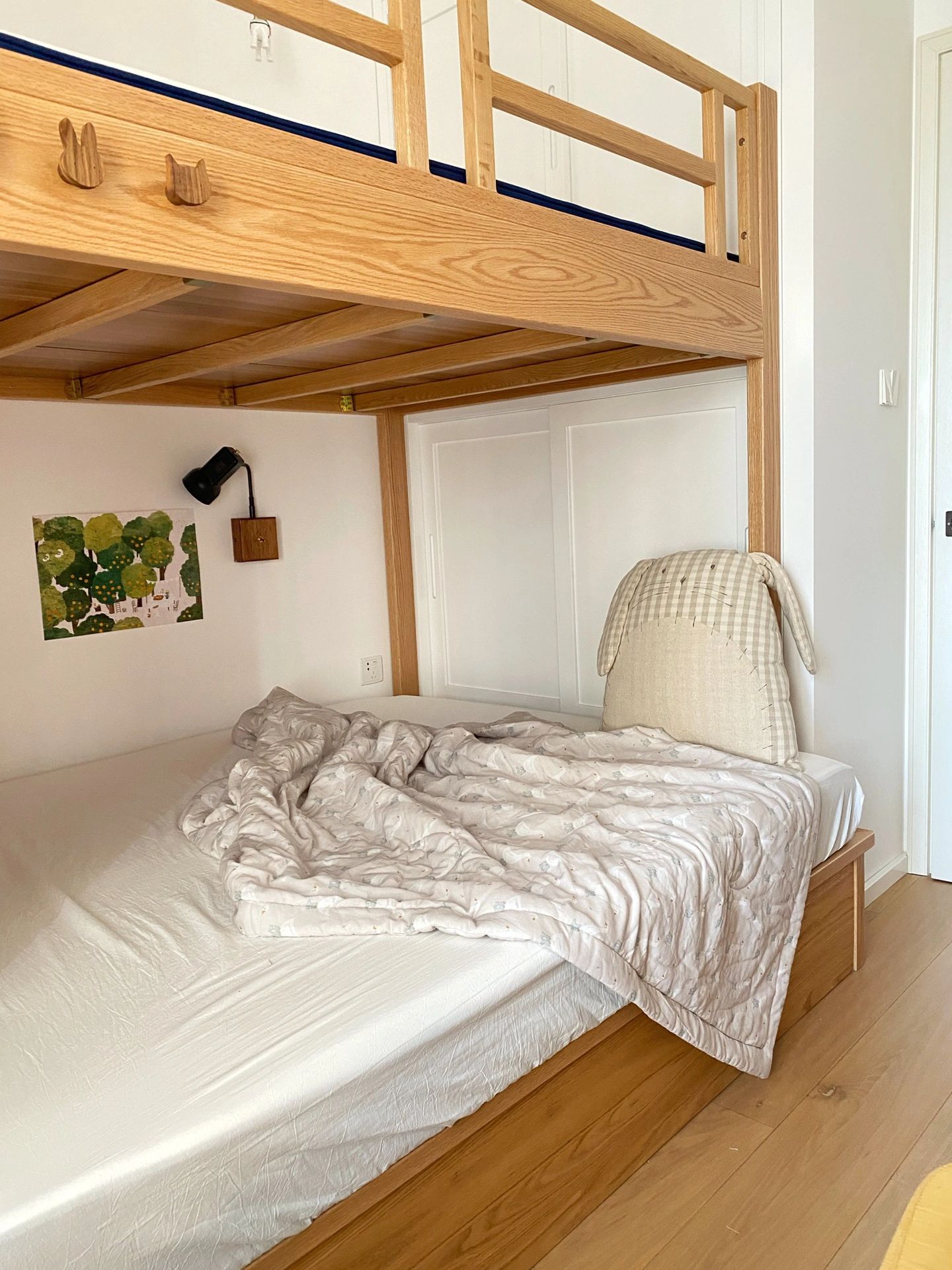 🌈下铺~靠在靠枕上,打开壁灯读书,或者在墙壁上放投影,下铺会有种藏在树屋里的安全感~