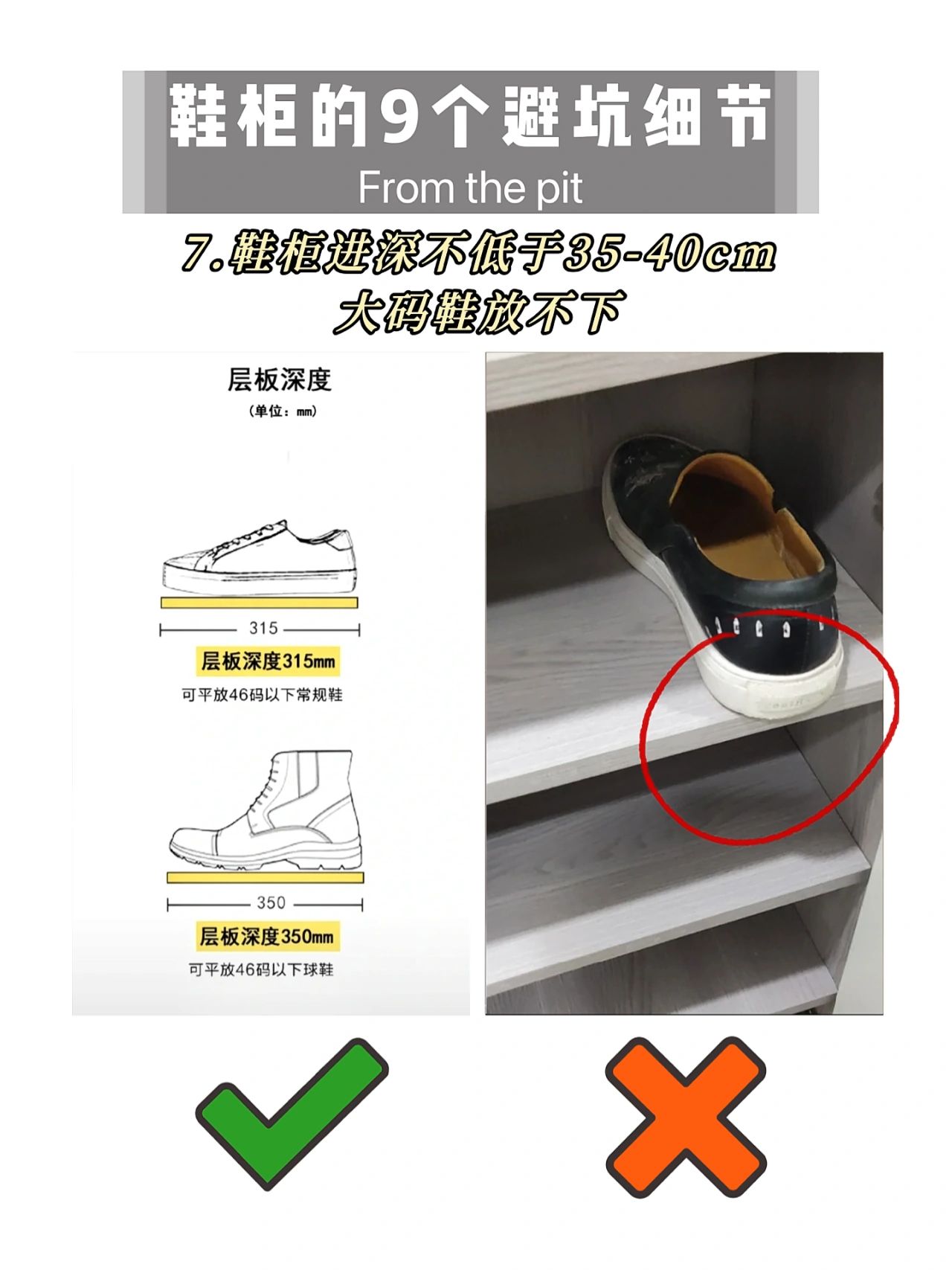 ✅7.鞋柜进深不低于35-40cm,大码鞋放不下