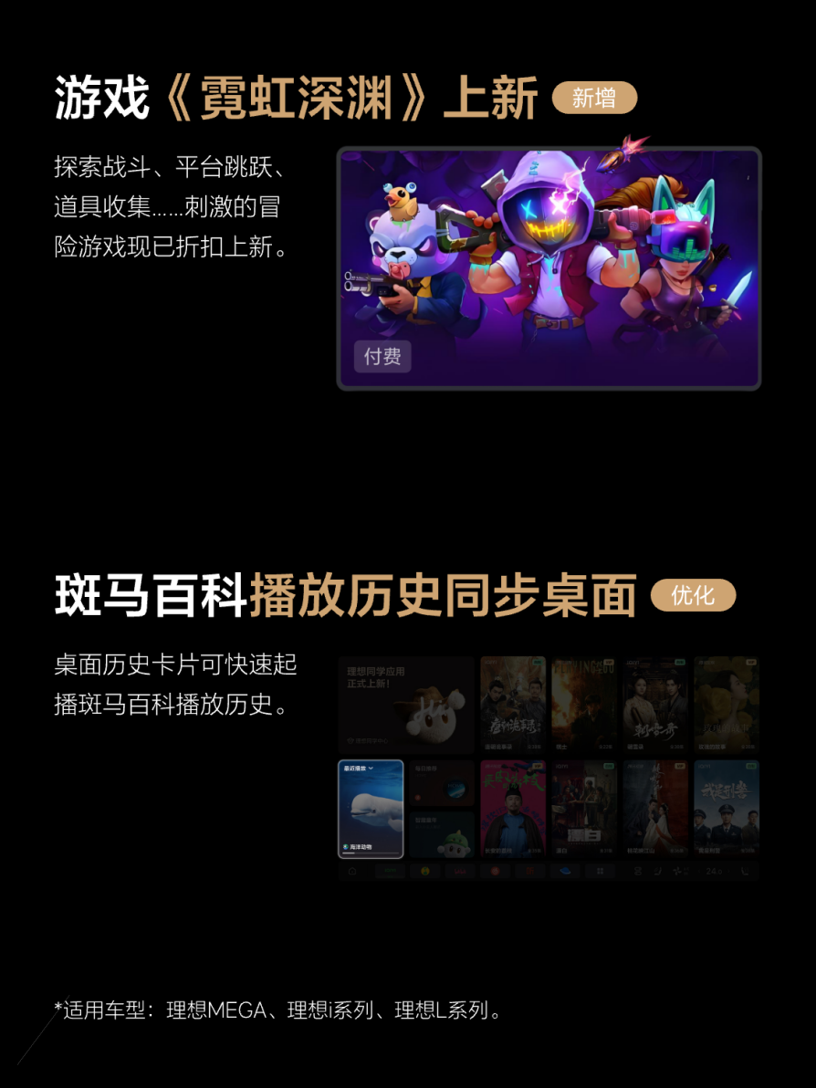 此外,智能座舱还新增了动作射击类冒险游戏《霓虹深渊》、强力雨刮模式语音控制、支付宝通讯缴费功能。其中,支付宝通讯缴费功能让理想同学接入了更多生活场景,基于CUA模型能力和支付宝小程序生态,用户可以一句话在车机端查询手机话费余额、充值话费。理想i6新增i人空间模式,用户可以一键打造舒适、隐私、安全的二排专属空间,同时支持通过中控或后舱娱乐屏查看实时舱外影像。