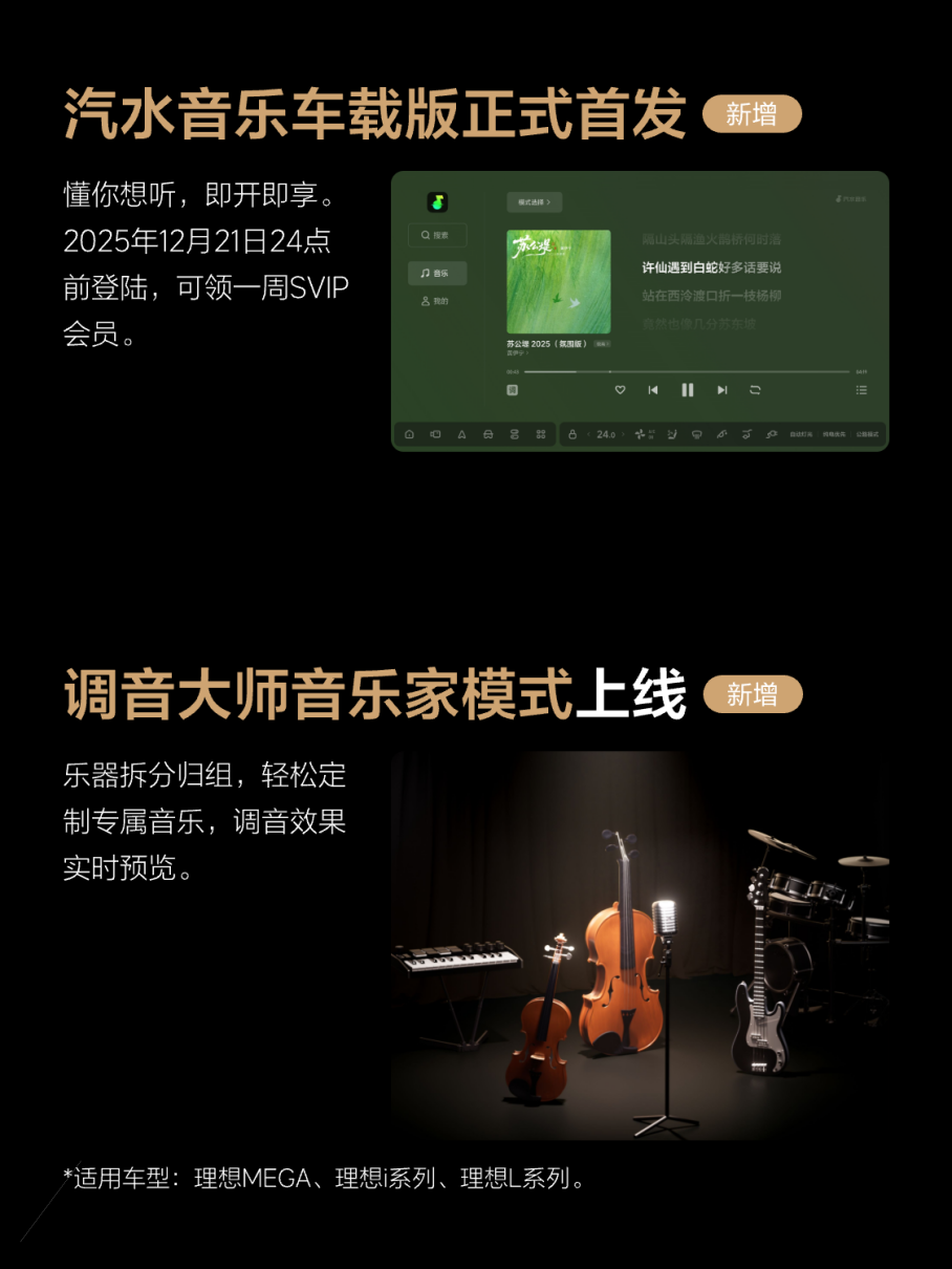 智能座舱首发上线汽水音乐车载版,不仅为用户带来个性化的听歌体验,还将带来车主福利。作为广受喜爱的个性音乐平台,汽水音乐的个性推荐功能,能够根据用户喜欢、品味相似用户的听歌偏好推荐感兴趣的歌曲;场景模式可以帮助用户快速找到好音乐。汽水音乐上下滑动切歌的操作方式符合抖音用户习惯,并且用户在抖音收藏的音乐可以同步到车机。12月16日24:00前,车机登录汽水音乐App即领7天SVIP会员,SVIP会员可以畅听海量无损音乐。