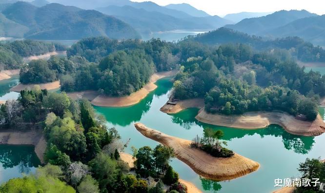 第六名,赣州阳明湖,位于上犹县陡水镇,旧称陡水湖,后因明代心学大师王阳明在赣南为官而易名,此处素有江右北戴河之称,水域面积达31平方公里,拥有427个湖湾和42座湖心岛,整体森林覆盖率超过百分之九十,素有“天然氧吧”之称,又被称之为江南的“植物王国”,阳明湖比杭州西湖大40倍。